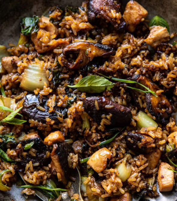 pork slow simmered in taiwanese spices, mushrooms, charred onion and scallion, over jasmine rice with a savory sweet 5-spice blend & thai basil.