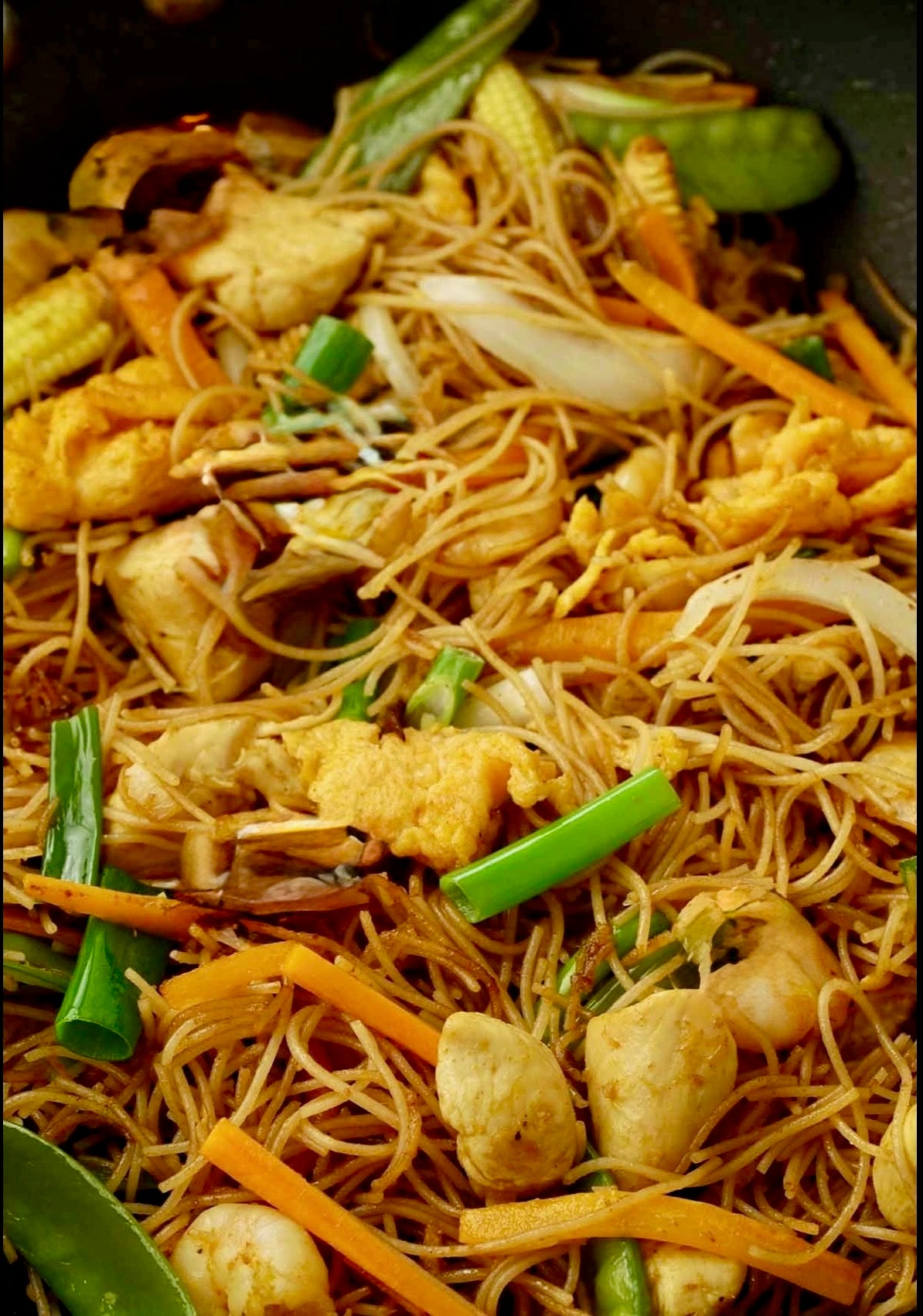 Organic chicken dry rubbed in Chinese 5 spice, then grilled and glazed in house char sui. Served with a Singapore noodle and vegetable sauté.